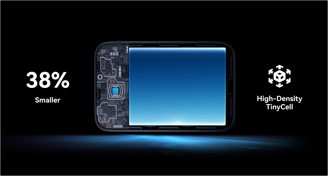 Die TinyCell™-Technologie komprimiert 20.000 mAh Leistung in einem um 38 % kleineren Gehäuse – für mühelose Energieversorgung unterwegs.
