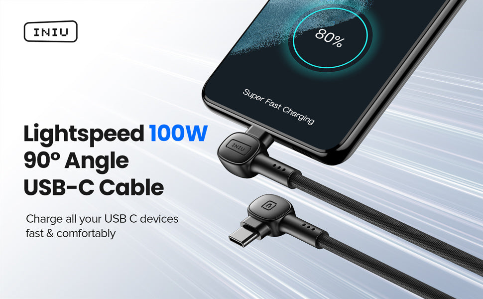 INIU D6CC 90° Diseño USB C Cable 100W (6.6ft, paquete de 2)