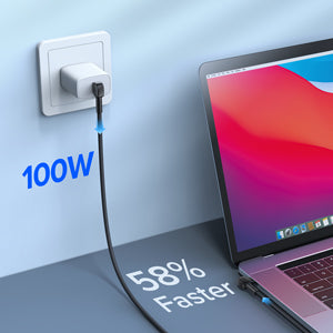 Funciona sin esfuerzo con dispositivos USB-C pequeños y grandes, incluidas computadoras portátiles, Switch, tabletas, teléfonos y más. La salida máxima de 100 W incluso permite una carga a máxima velocidad para MacBook Pro de 16 ''.