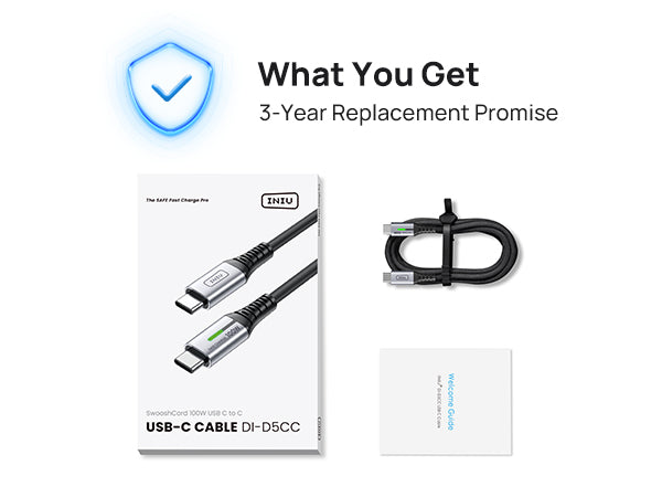 El cable USB-C a USB-C de carga rápida de 100 W está fabricado con doble chip E-Mark certificado, detecta automáticamente los dispositivos y proporciona la energía necesaria, lo que lo mantiene en una carga a la velocidad de la luz y seguro.