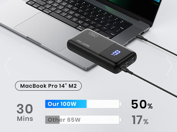 - [Carga rápida Power Beast de 100 W para todos los dispositivos]Mejora tu experiencia de carga con nuestra batería externa de vanguardia. Está optimizada para ofrecer una increíble potencia de 100 W, lo que garantiza una carga ultrarrápida para portátiles de gama alta y te permite mantenerte productivo sin estar atado a un enchufe.