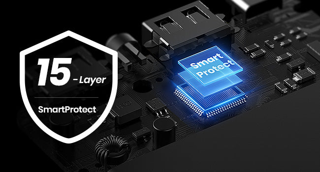 SmartProtect de 15 capas elimina 15 posibles riesgos de carga: adiós al sobrecalentamiento y al daño del dispositivo.