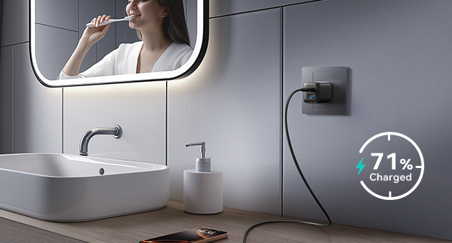 Carga rápida de 30 W durante 25 minutos de lavado matutino