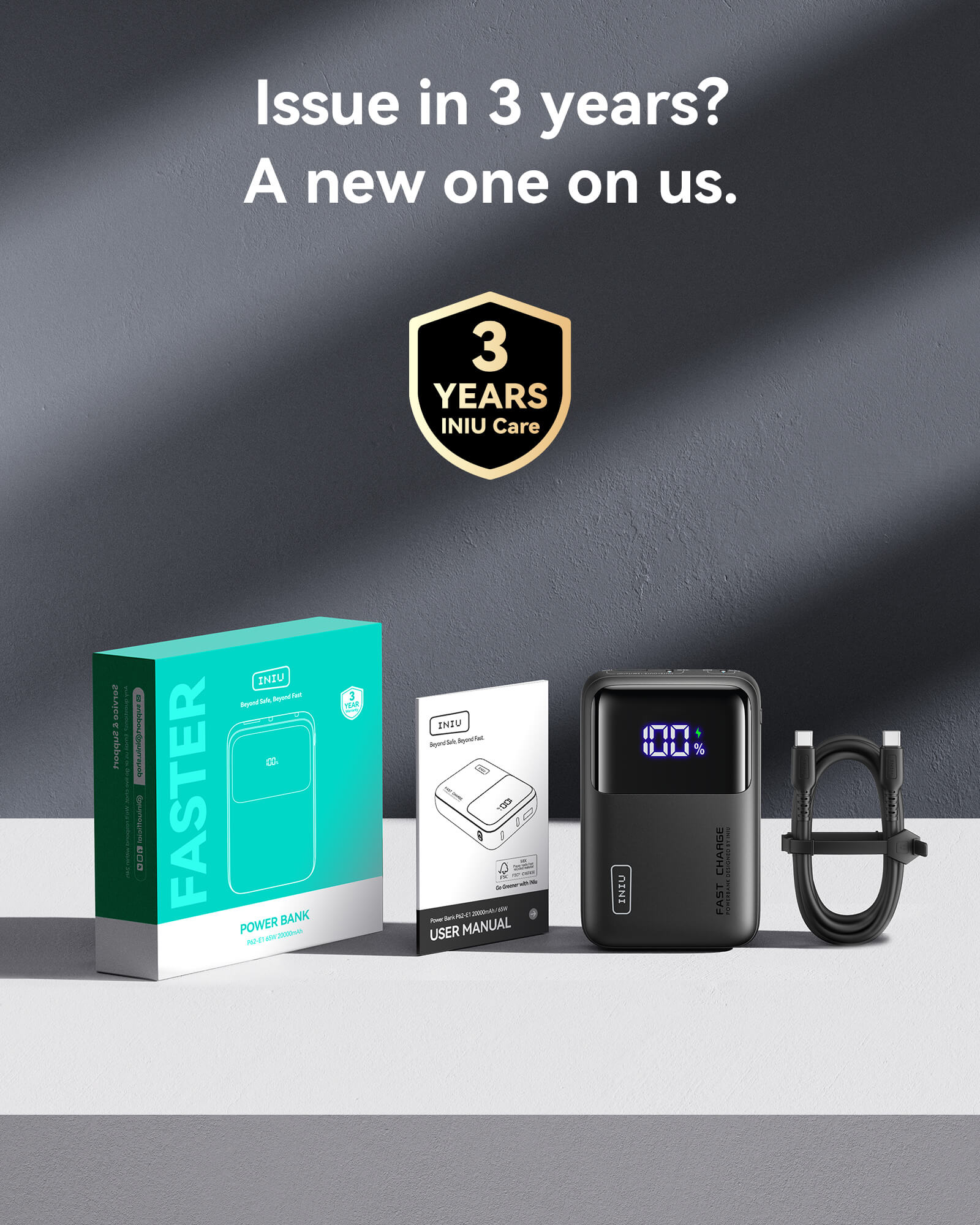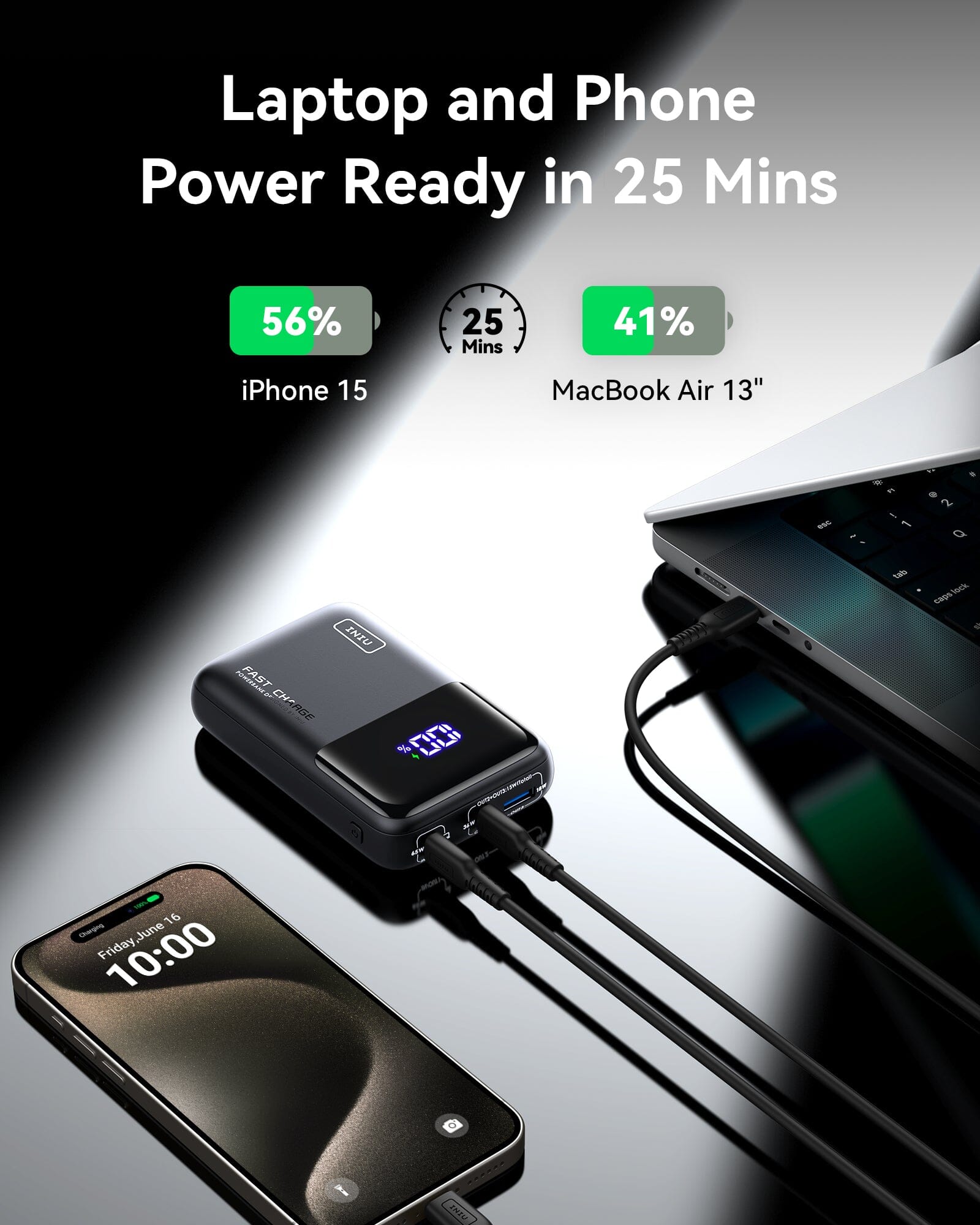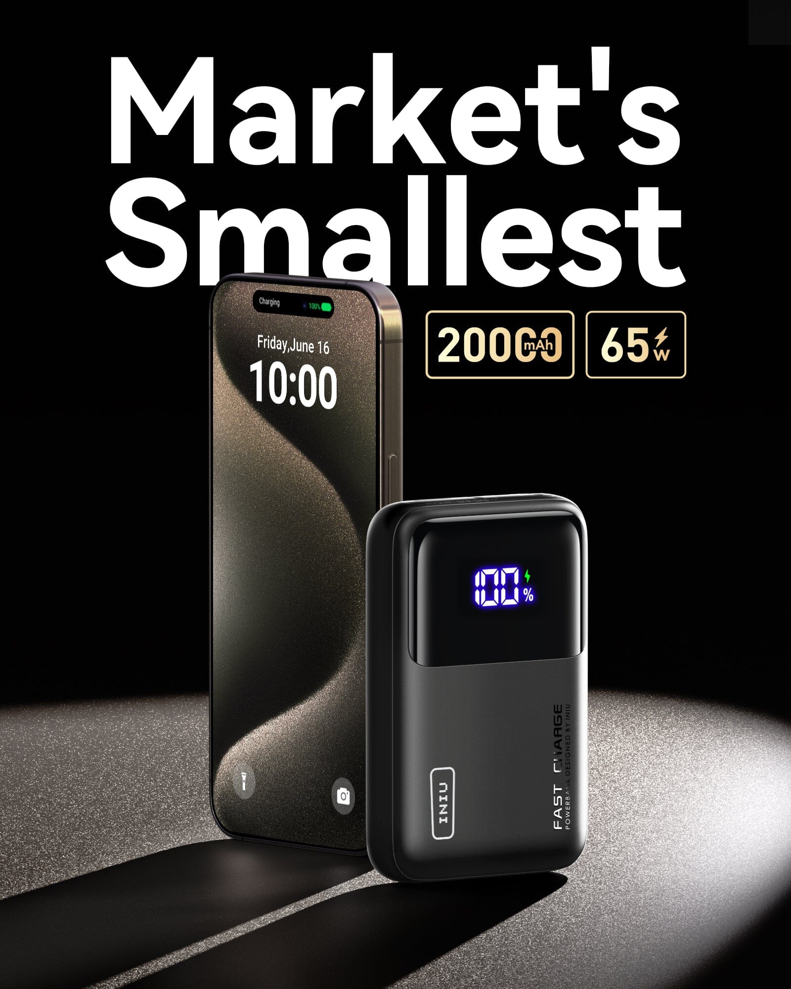 Batterie externe INIU Cougar P62-E1 la plus petite 65 W 20 000 mAh