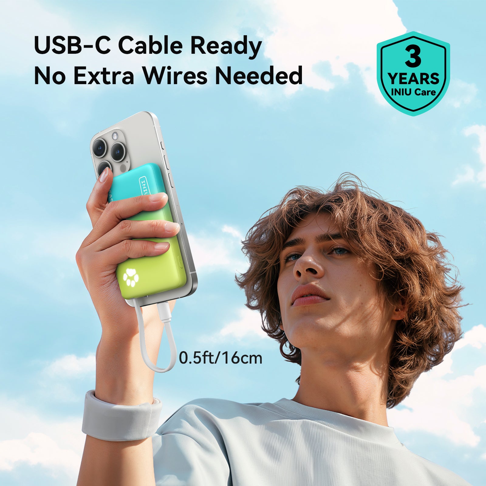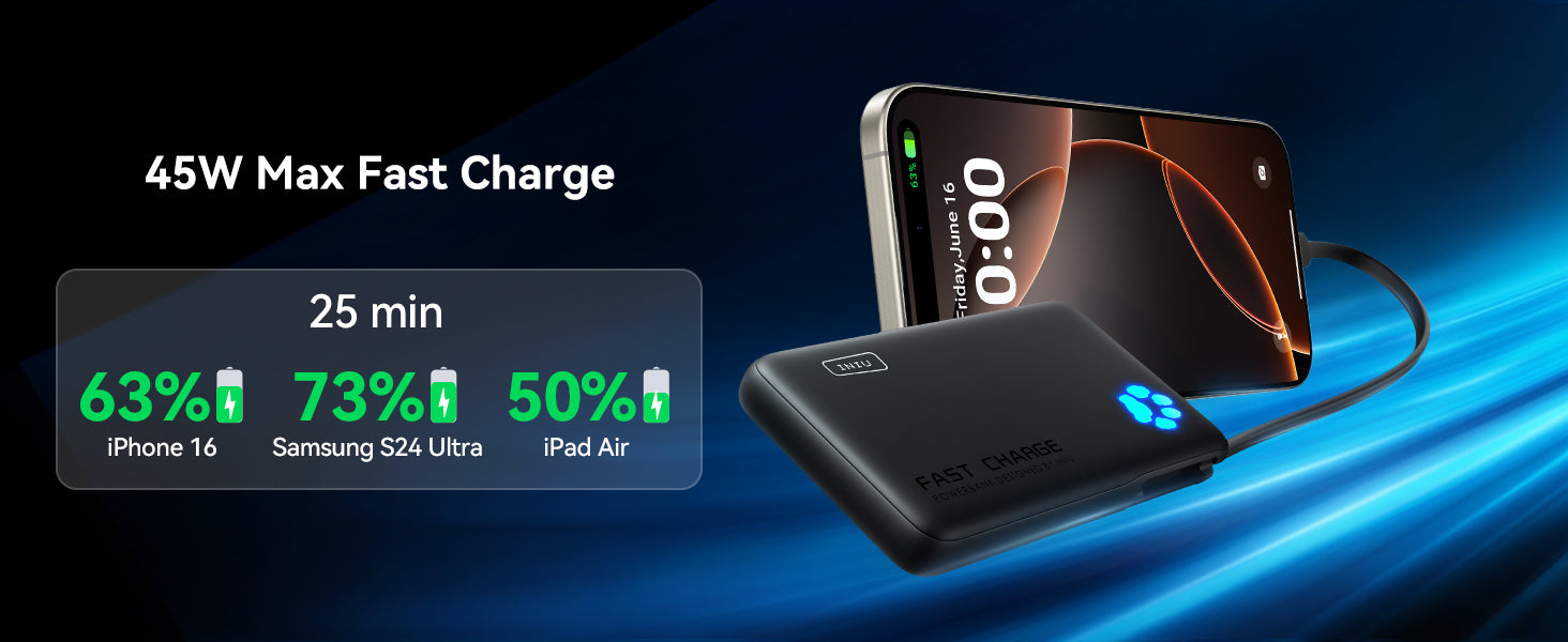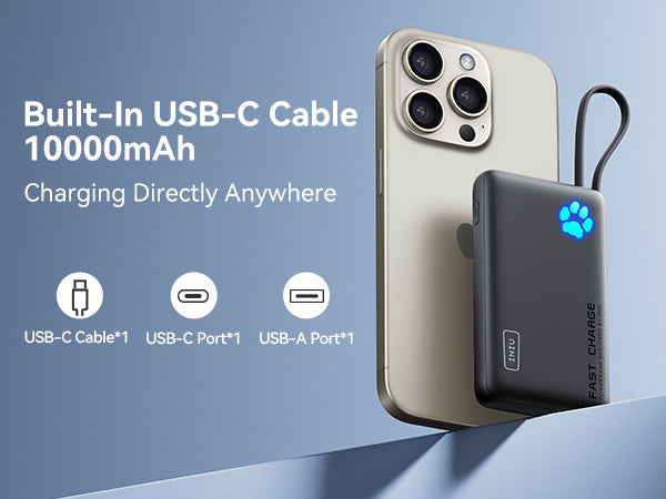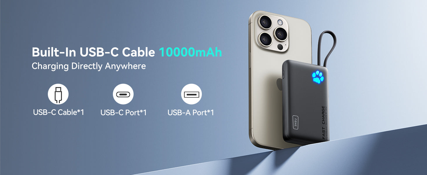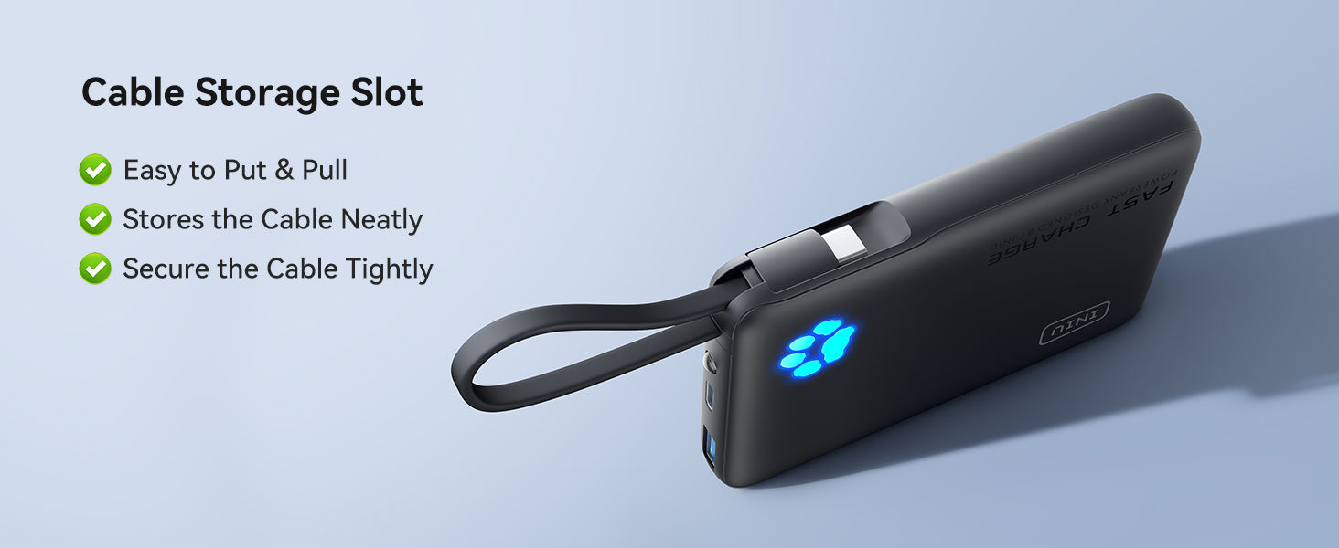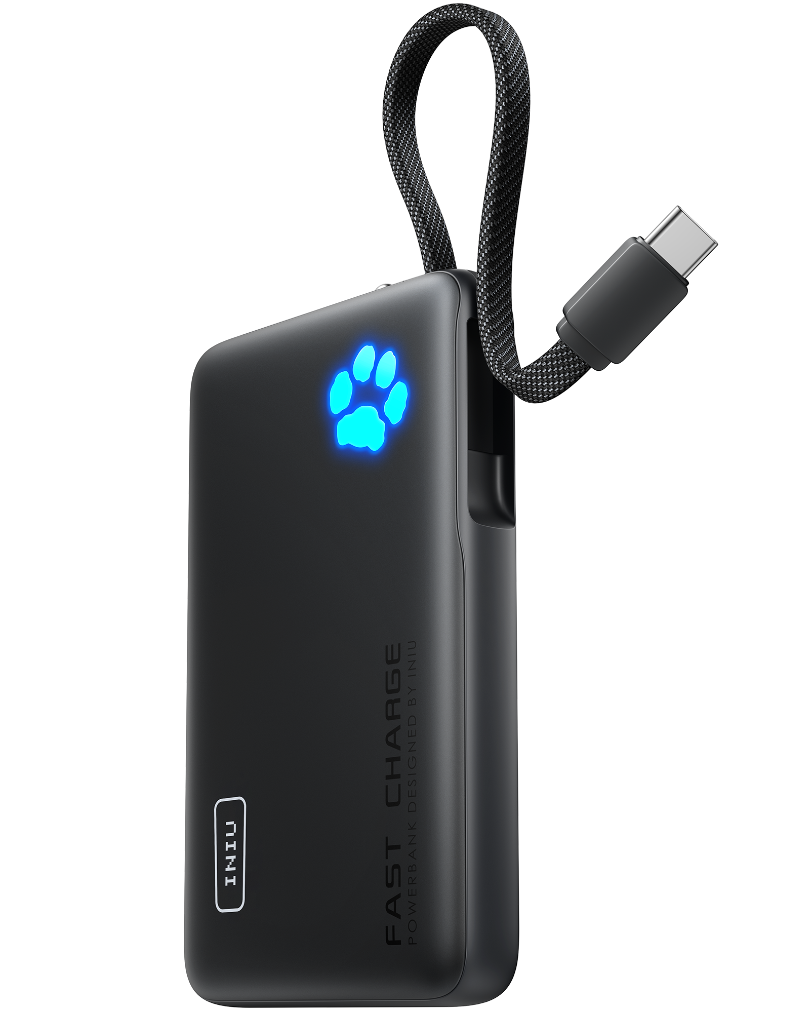 INIU Pawsible P41L-E2 Power Bank con cavo integrato, sottilissimo, 45W 10000mAh