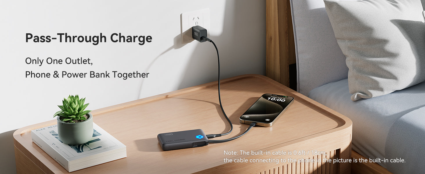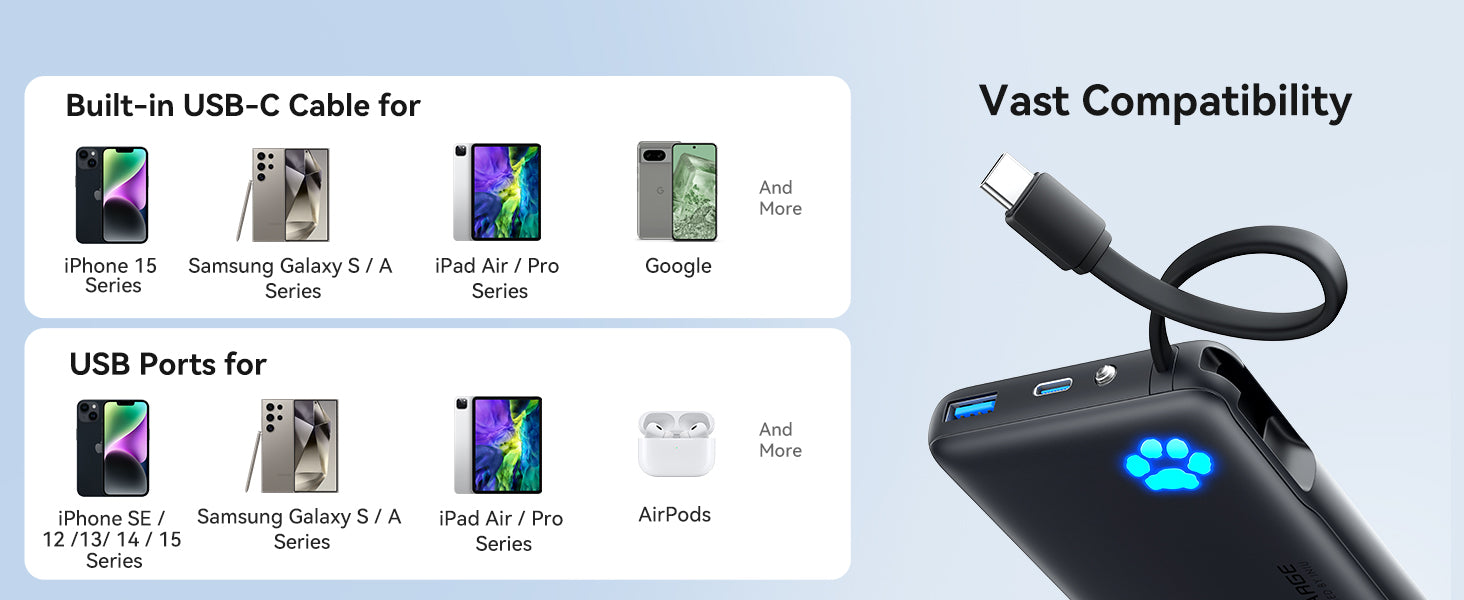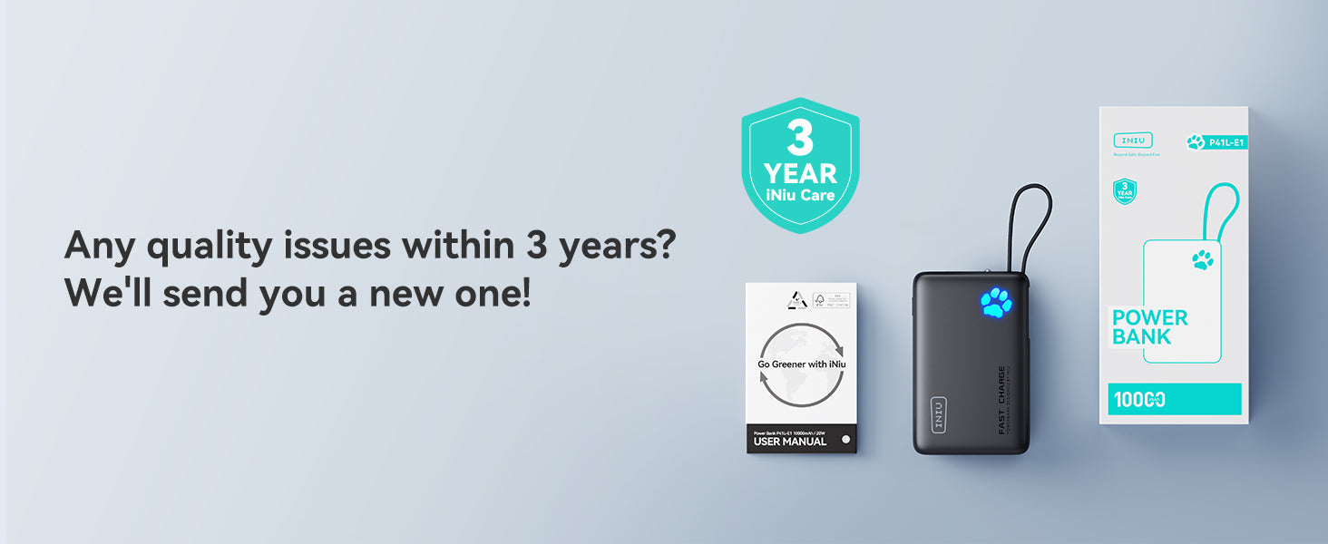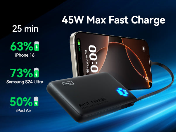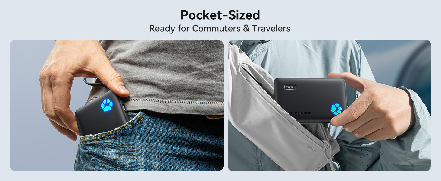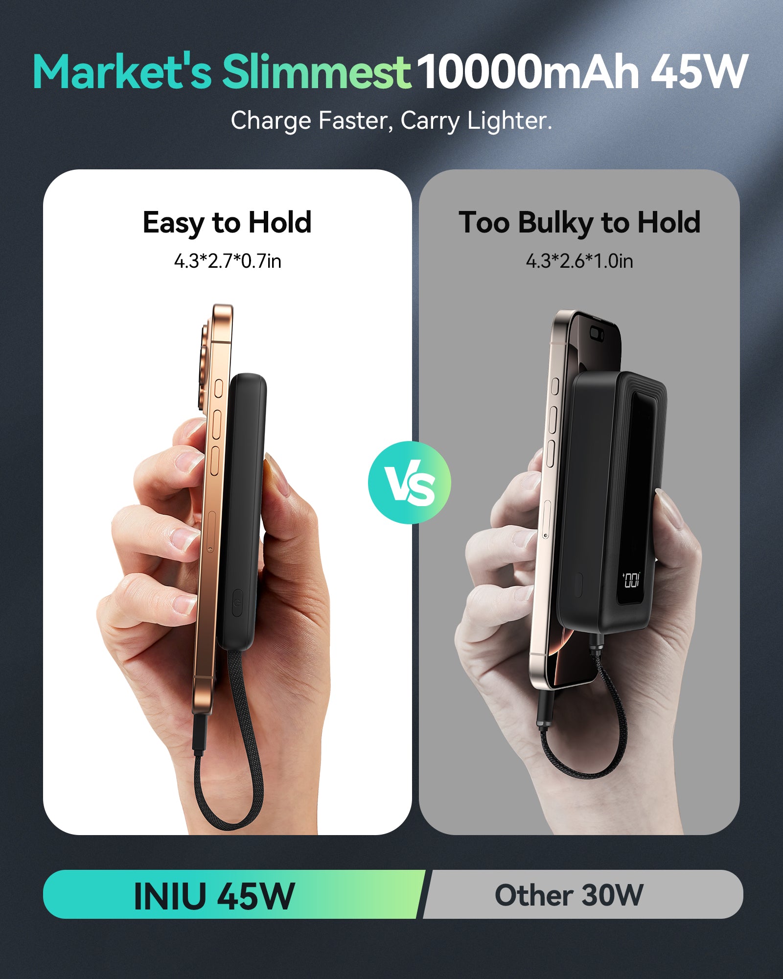 INIU Pawsible P41L-E2 Power Bank con cavo integrato, sottilissimo, 45W 10000mAh