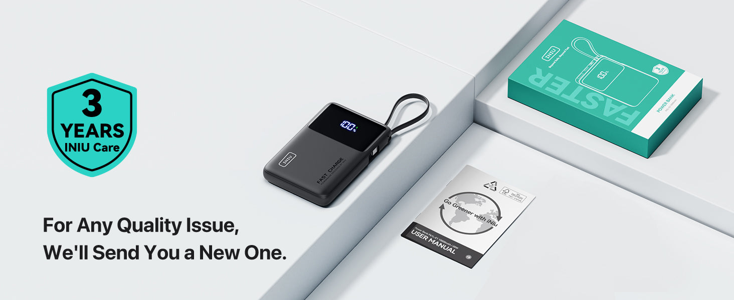 [Wat je krijgt] INIU Draagbare powerbank van 10000 mAh*1, gebruikershandleiding*1. Geniet ervan INIU toonaangevende 3-jarige INIU Als er sprake is van kwaliteitsverlies, sturen wij u een nieuw exemplaar.