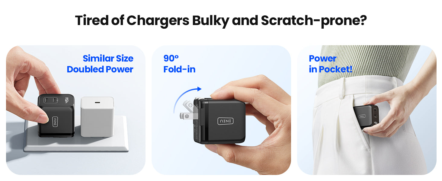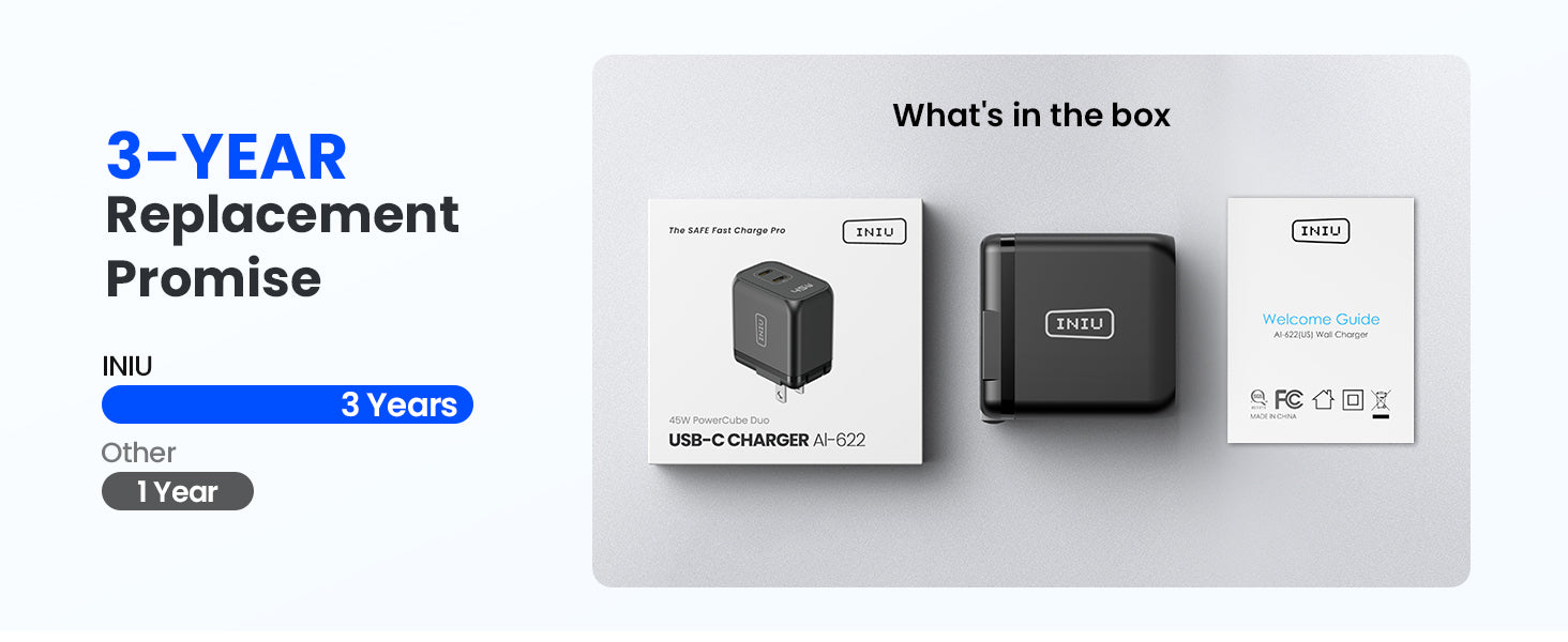 INIUDe gepatenteerde GaNⅡ-technologie van beschermt u en uw apparaten door de temperatuur intelligent meer dan 3,2 miljoen keer per dag te bewaken. Zo worden u en uw apparaten beschermd tegen brandgevaar en batterijschade.