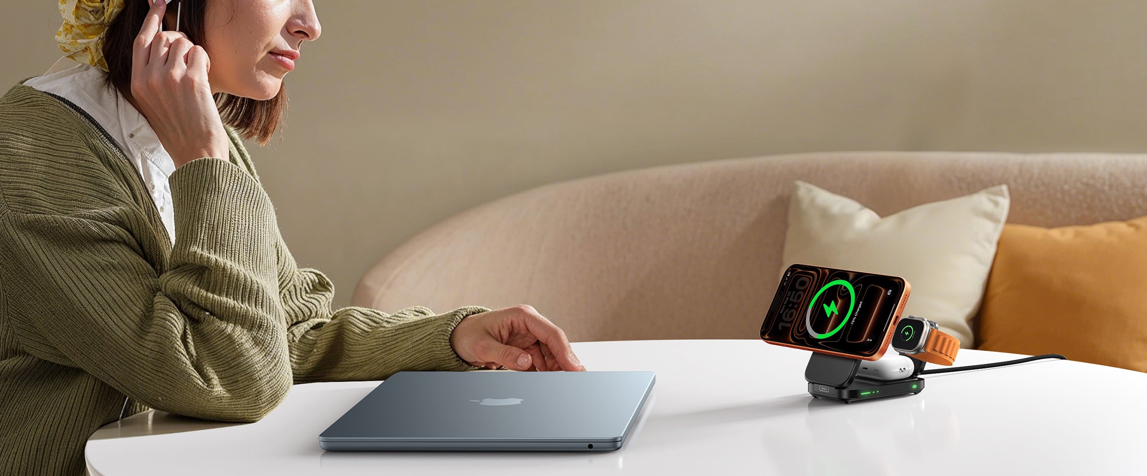 Yes. INIU's SnapGo W31-E1 3-in-1 wireless charging station (e.g., W31-E1) is foldable, compact, and supports simultaneous charging of your iPhone, Apple Watch, and AirPods. It's ideal for minimal setups at home or while traveling.