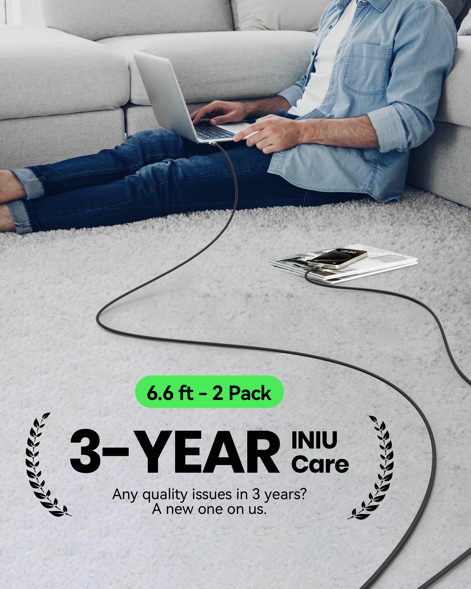 INIU Kabel USB C do C D5CC 100 W (6,6 stopy, 2 sztuki)