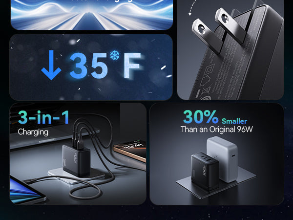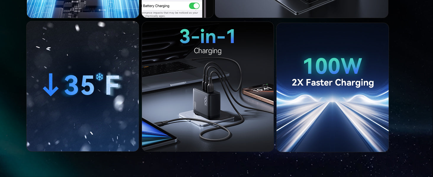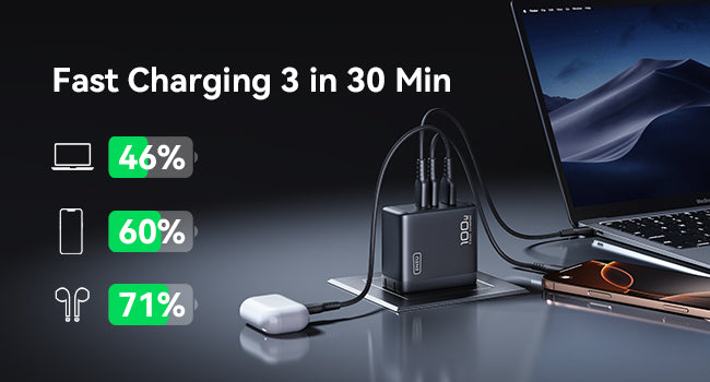 C1 (45 W), C2 (30 W), A (18 W): szybkie ładowanie laptopów, telefonów i innych urządzeń. *Test przeprowadzony na MacBooku Air 13, iPhonie 16 Pro Max i AirPods.