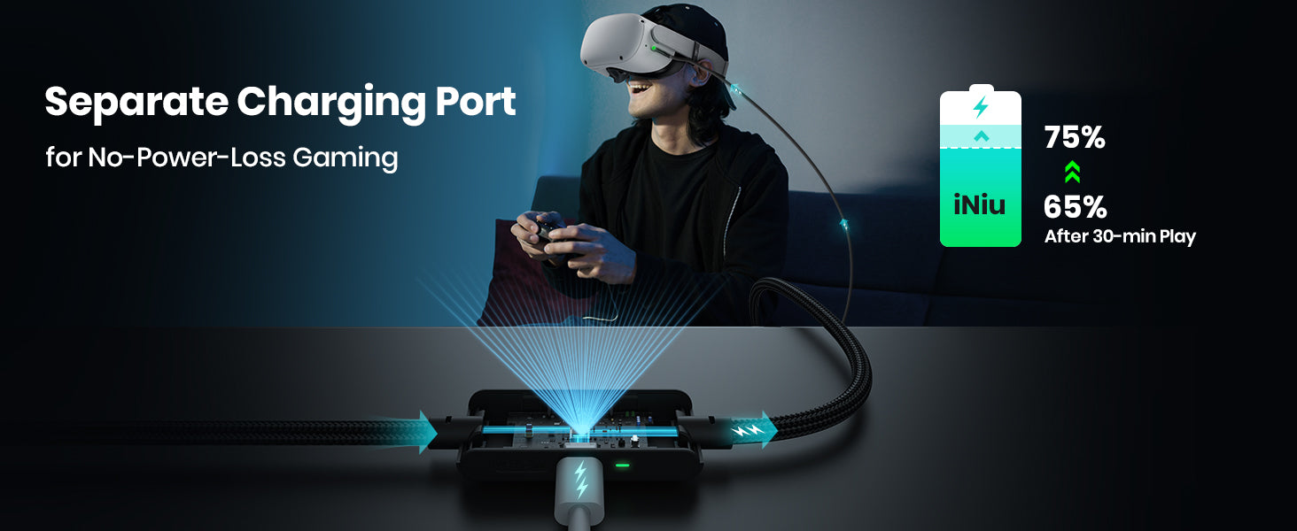 INIU Kabel łączący DI401 16FT VR o dużej prędkości przesyłu danych z oddzielnym portem ładowania zapewniającym wyjątkowo trwałe zasilanie