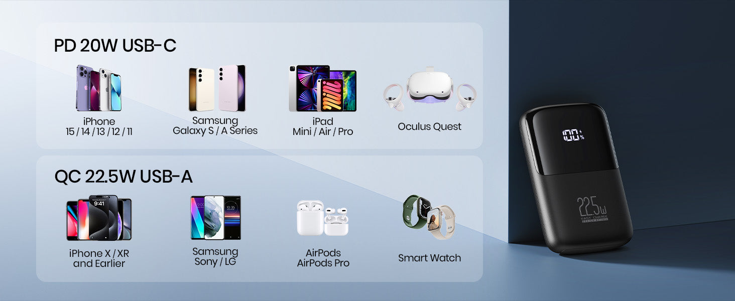 • [Ogromna kompatybilność]INIU PD10000 pasuje do każdego urządzenia, zarówno dużego jak iPad, jak i małego jak Airpods. Wygodnie aktywuje specjalny tryb ładowania dla różnych urządzeń.