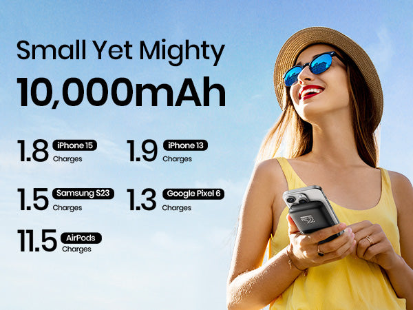 • [Moc na wiele dni]Ten Capacity W miniaturowej obudowie zgromadzono 10000 mAh, co pozwala na 3,6-krotne naładowanie iPhone'a 8 i Samsunga S10 razy 2,1, iPad Mini 1,5 razy, a AirPods Pro 12,5 razy itd.