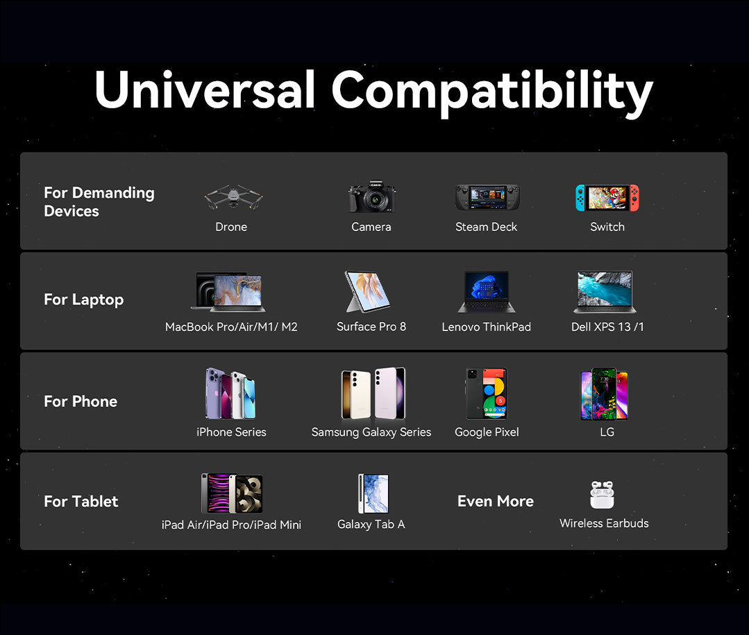Dzięki pojemności 25 000 mAh i o 30% bardziej kompaktowej konstrukcji, ten powerbank zmieści się w torbie, oszczędzając miejsce i zapewniając ładowanie urządzeń. Dodatkowo, w zestawie znajduje się zintegrowany kabel USB-C do ładowania, zapewniający maksymalną mobilność.