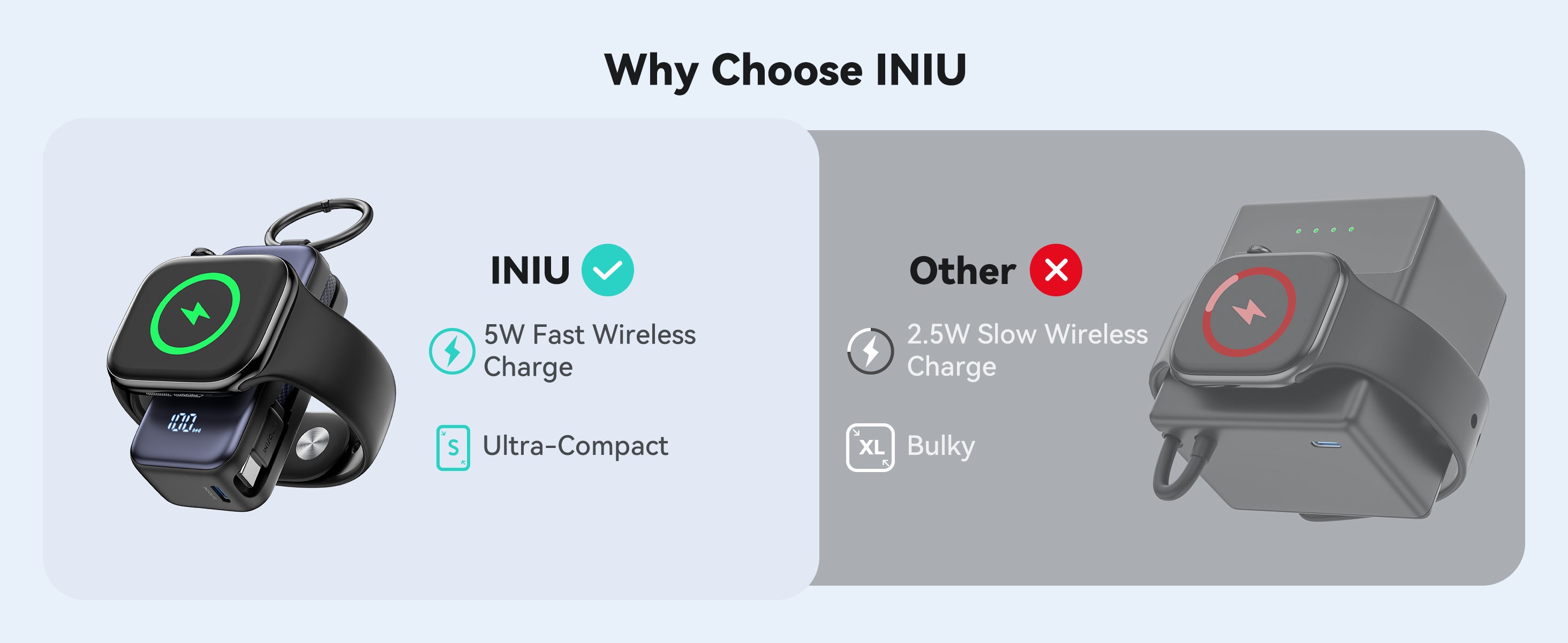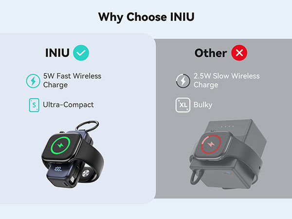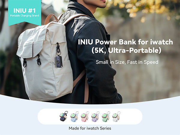 - [Co otrzymasz] INIU Powerbank o pojemności 5000 mAh do zegarka iWatch*1, instrukcja obsługi*1 i INIU wiodąca w branży 3-letnia opieka i dożywotnie wsparcie techniczne.
