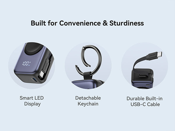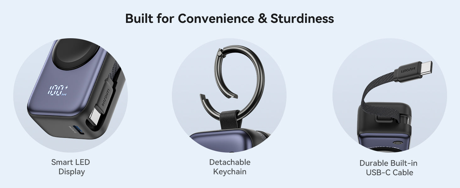 - [Ładowanie wielu urządzeń] Wyposażony we wbudowany kabel USB-C i dodatkowy port USB-C, ten przenośny powerbank zasila jednocześnie Twojego iPhone'a, iWatcha i AirPods — bez konieczności noszenia ze sobą wielu ładowarek.
