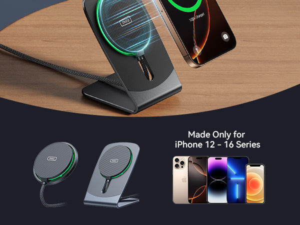 - [TYLKO dla serii iPhone 16-12] Nasza ładowarka umożliwia bezproblemowe ładowanie bezprzewodowe zgodne ze standardem MagSafe dla serii iPhone 16-12, nawet w przypadku telefonów z etui magnetycznym (grubość etui ≤0,16 cala/4 mm).