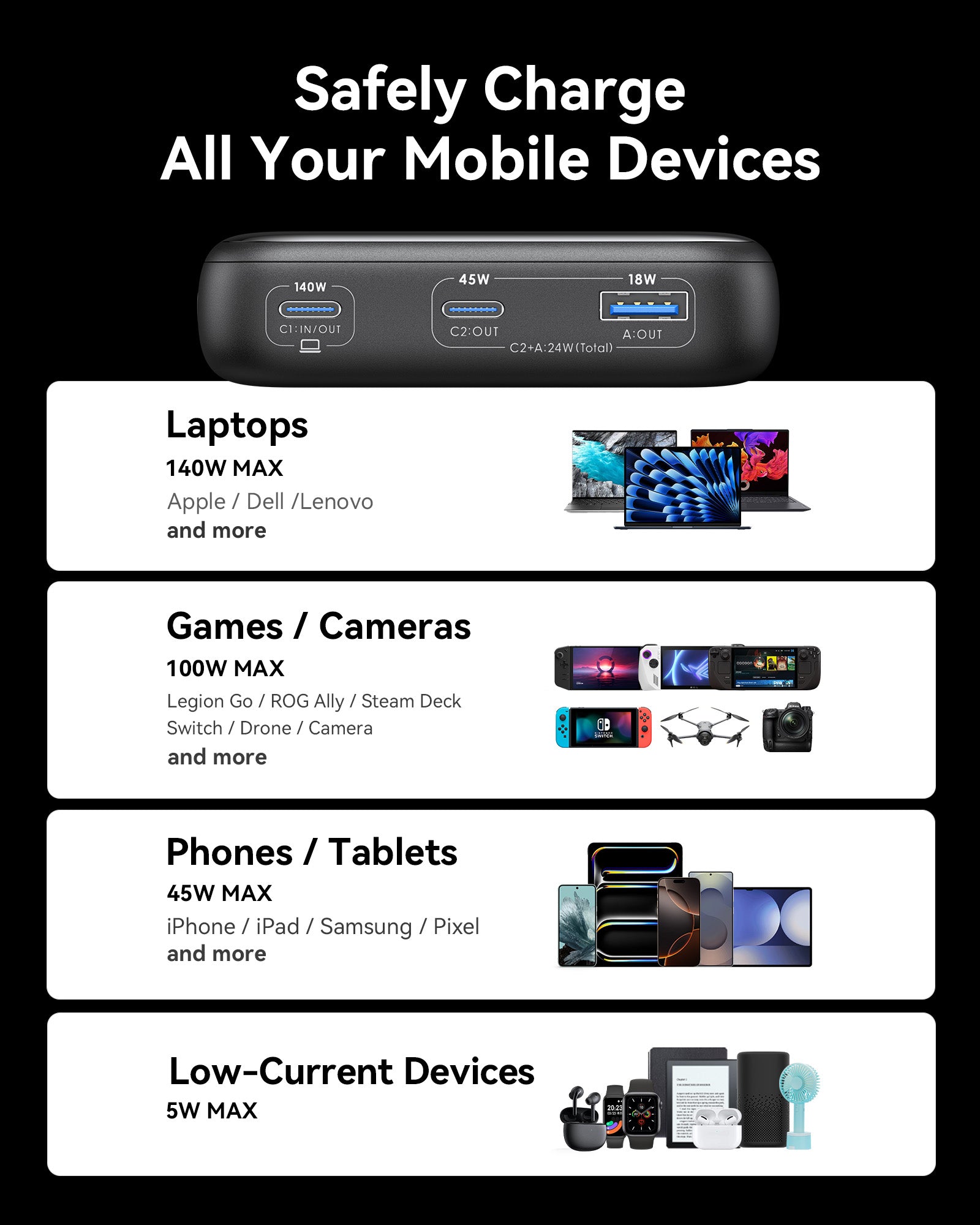 At INIU, our industry-leading 3-Year Care Coverage giving you no-worry shopping experience. Comes with a 2ft 240W USB-C to C Cable for your better fast charging experience.