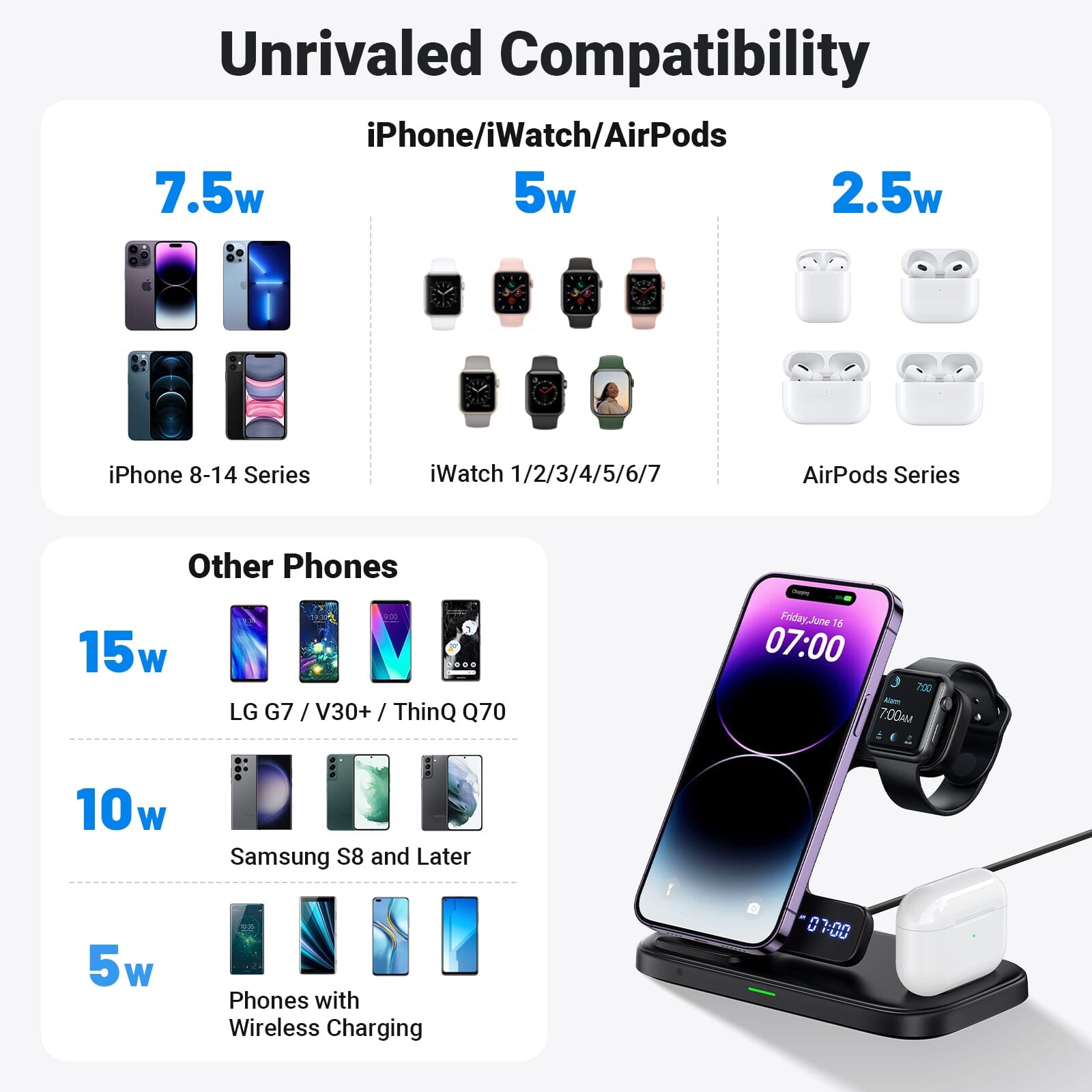 Simply put your 3 favorite devices and the 15W max fast charging will incredibly knock off at least 45 minutes of phone charging time.