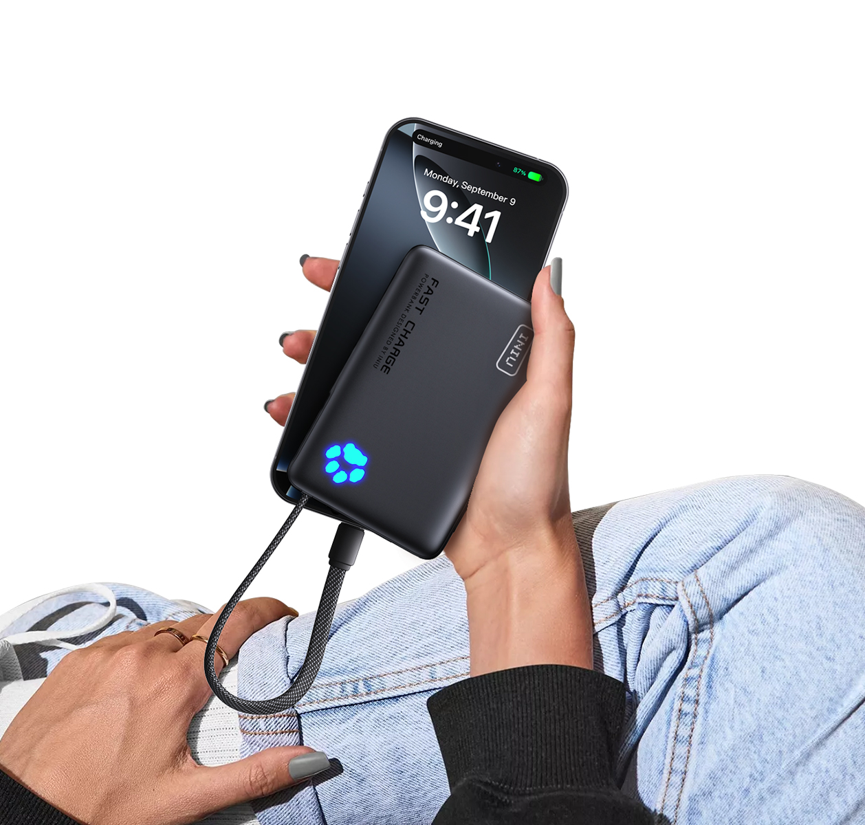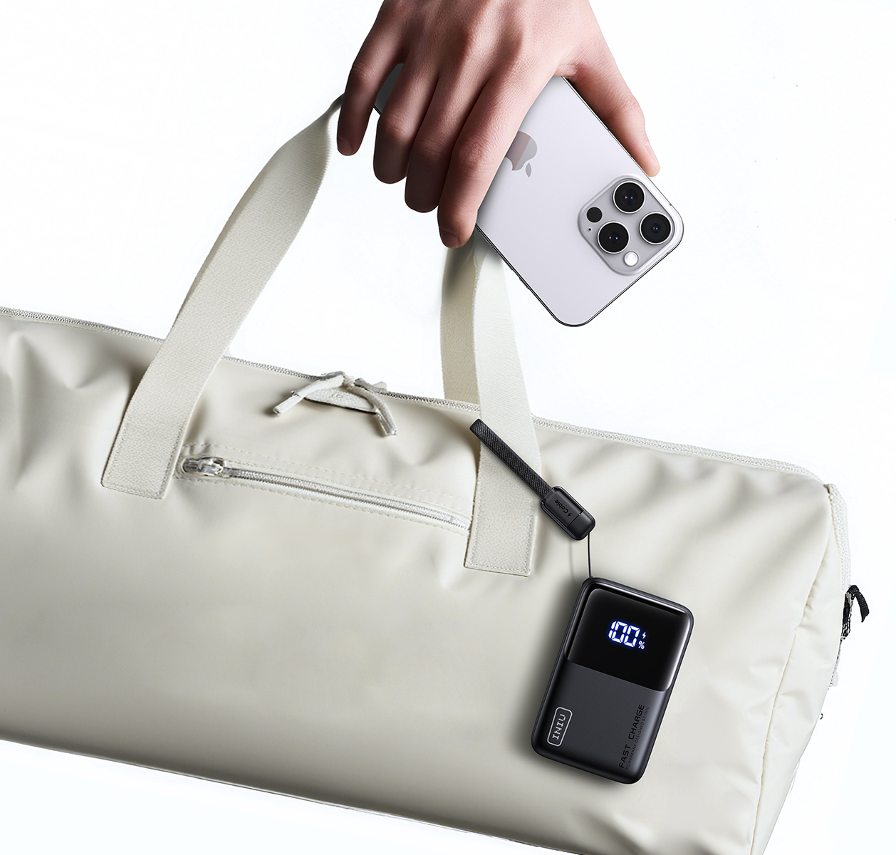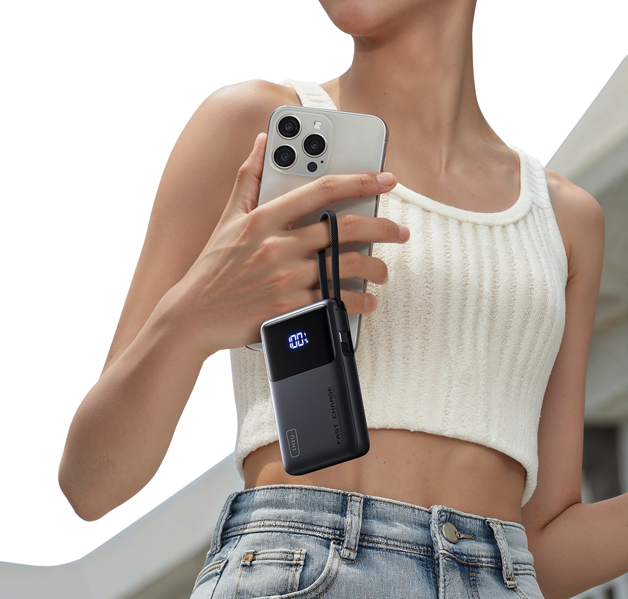 A USB-C power bank offers faster and more efficient charging for smartphones, tablets, and even laptops through USB-C ports. With support for fast charging and higher power output, it can quickly recharge your devices on the go. INIU models also come as a portable charger with built-in cable or lanyard-integrated fast charging type c cable, reducing the need to carry extra cords. Compact options, like the INIU P50-E1 smallest power bank, make it easy to slip into a bag or pocket, ensuring you stay powered throughout your day.