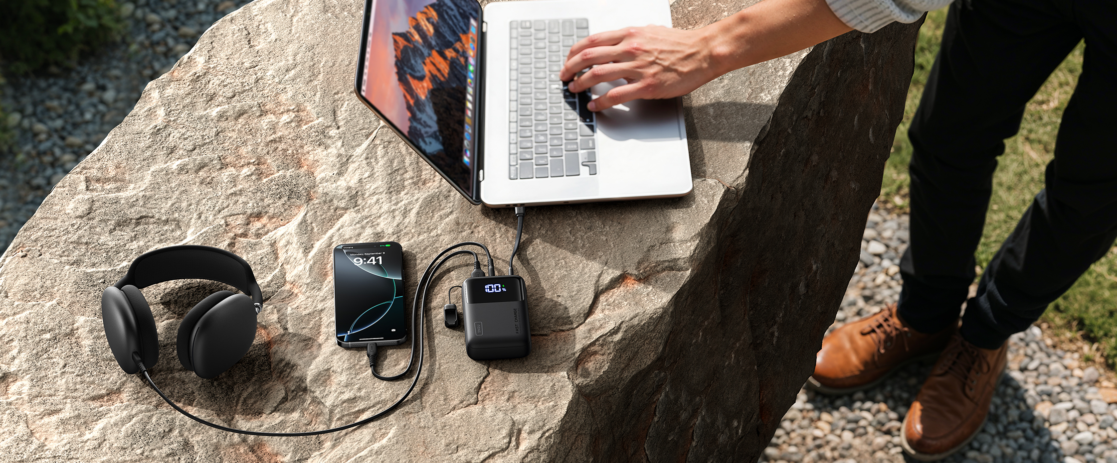A portable charger with built-in cable eliminates the hassle of carrying extra cords and adapters. You no longer need to worry about forgetting your charging cable or dealing with tangled wires, making it easier to fast charge your devices on the go. For users with multiple gadgets, it also reduces clutter while keeping a USB-C power bank ready to charge phones, tablets, or even laptops when needed