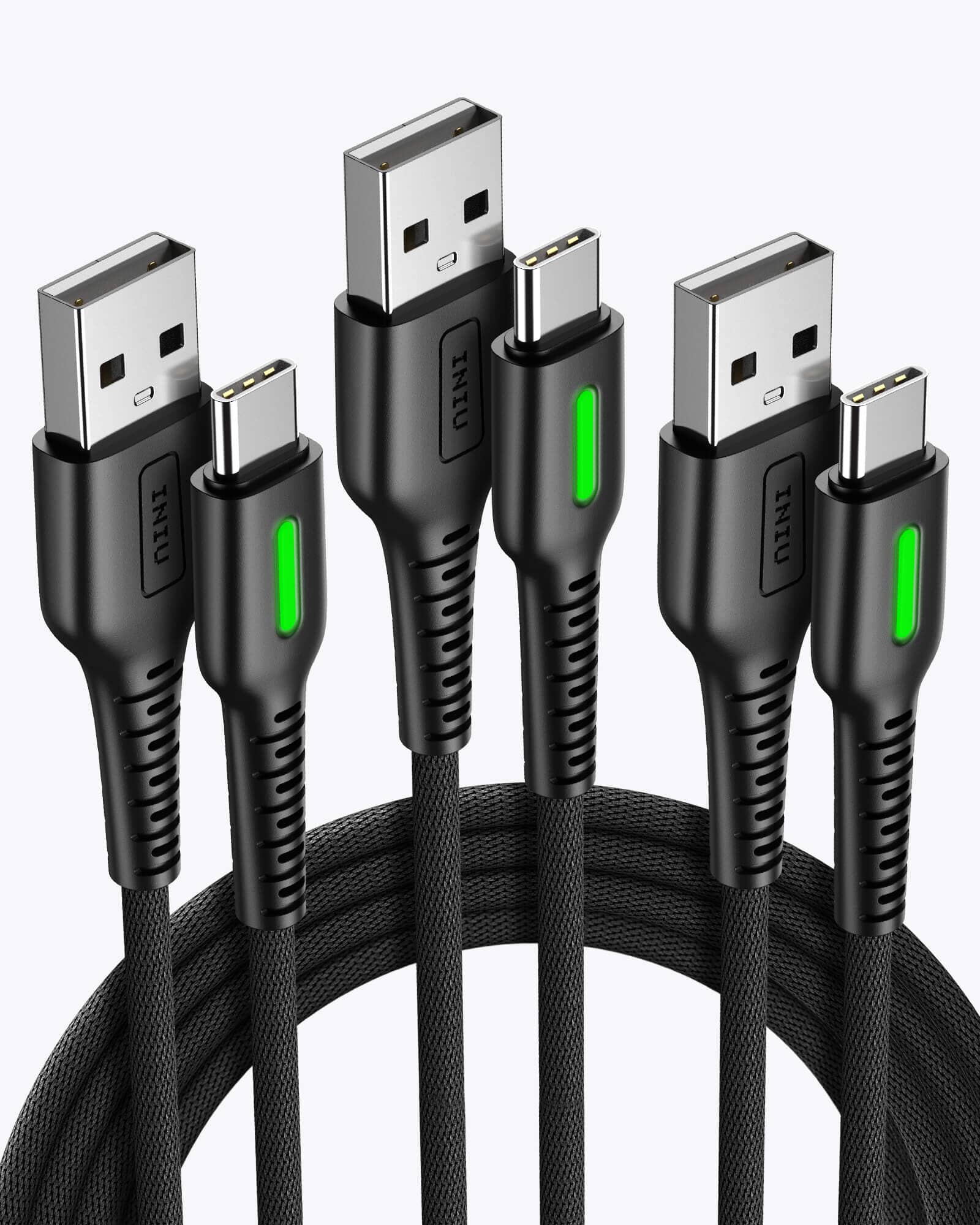 INIU D3C Anti-ruptur USB C-kabel (3,6 cm + 1,8 cm + 3 m, 3-pack), kompatibel med iPhone 14 13 12 Pro Samsung S21 Google LG iPad surfplatta, etc.